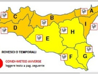Il dipartimento regionale della Protezione civile della Presidenza della Regione Siciliana ha diffuso oggi l’avviso 21198 per il rischio meteo-idrogeologico ed idraulico, secondo il quale, “dalle prime ore di domani e per le successive 24-36 ore, si prevedono precipitazioni a prevalente carattere temporalesco. I fenomeni saranno accompagnati da rovesci di forte intensità, grandinate, frequente attività elettrica e forti raffiche di vento”.