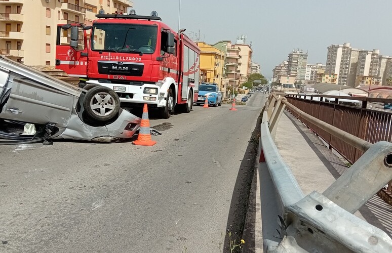 E’finito con l’auto contro il guard-rail e poi si è ribaltato, sul ponte di via Giafar, a Palermo.