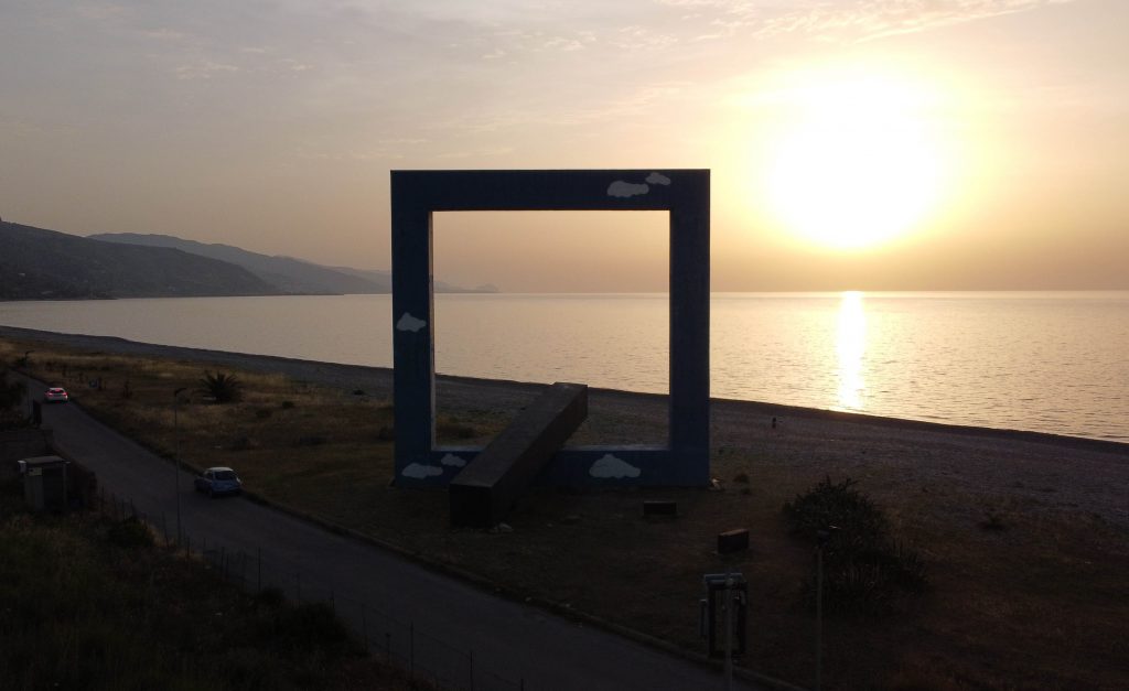 Situata in cima a una collina nel comune di Motta d’Affermo, questa maestosa scultura alta 30 metri, realizzata da Mauro Staccioli, offre uno spettacolo unico quando i raggi del sole al tramonto la attraversano, simboleggiando pace e bellezza lungo il 38° parallelo.