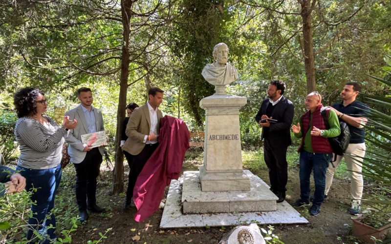Sono stati ripuliti e consegnati alla città il busto di Archimede e il monumento