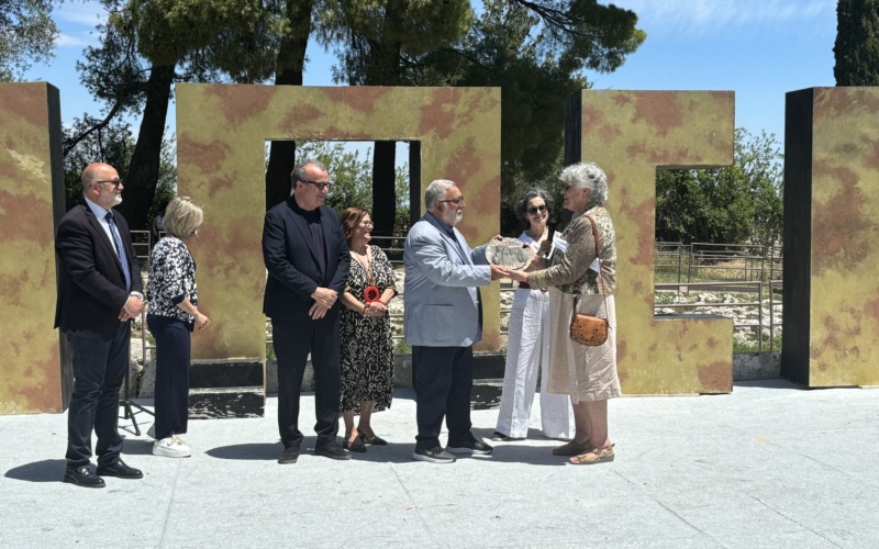 Questa mattina, a Palazzolo Acreide, Cristina Loglio, vicepresidente di Europea Nostra, ha consegnato ufficialmente il riconoscimento al termine della cerimonia che si è svolta alla presenza degli studenti partecipanti al Festival internazionale del teatro classico dei giovani, di Marina Valensise, consigliere delegato e sovrintendente ad interim dell’INDA, del sindaco di Palazzolo Salvatore Gallo, del vicesindaco di Palazzolo Nadia Spada, di Fabio Granata, assessore alle Politiche culturali del Comune di Siracusa e di Sebastiano Aglianò, che cura da sempre l’organizzazione del Festival. La rassegna a Palazzolo quest’anno coinvolge oltre 2400 studenti e studentesse provenienti da tutta Italia e da Grecia, Spagna, Tunisia, Lussemburgo, Francia e Germania.