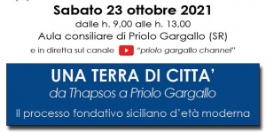 Priolo Gargallo, 21 Ottobre 2021- “Una Terra di Città, da Thapsos a Priolo Gargallo. Il Processo fondativo siciliano d’età Moderna”.