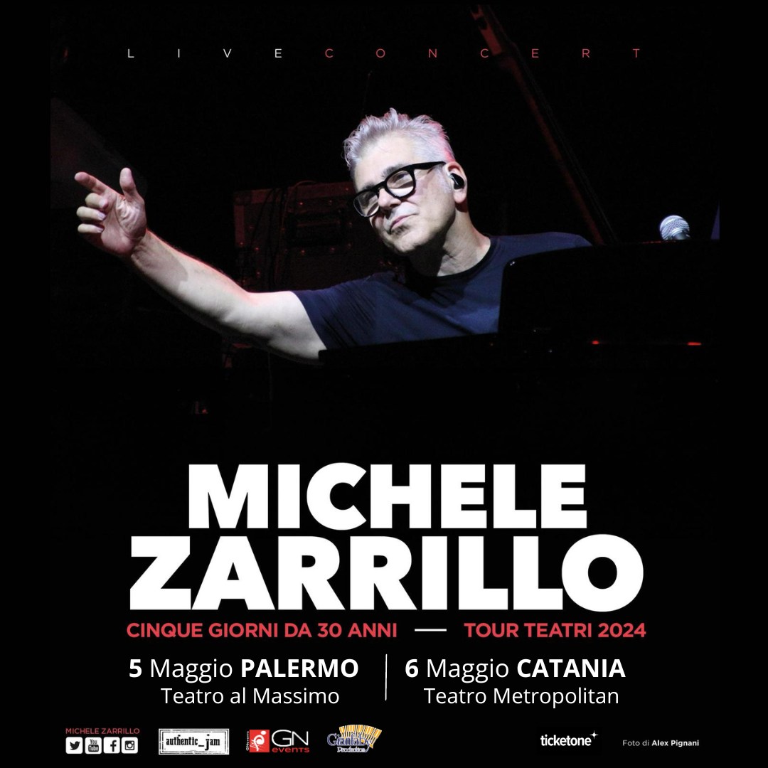 Michele Zarrillo ha annunciato le prime date del tour “Cinque giorni da 30 anni” che lo porterà in giro nelle principali città italiane per tutto il 2024, per festeggiare le tre decadi di un evergreen che non smette di conquistare intere platee e generazioni. Due le tappe in Sicilia, organizzate da Gianfaby Production e GN Events: domenica 5 maggio al Teatro al Massimo di Palermo (ore 21.30 – CLICCA QUI per info biglietti) e lunedì 6 maggio al Teatro Metropolitan di Catania (ore 21.30 – CLICCA QUI per info biglietti).