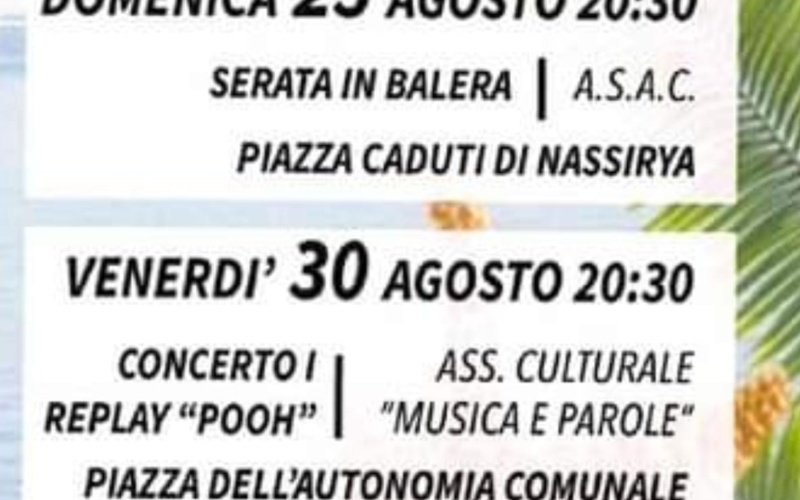 domenica 25 agosto, alle 20;30, in piazza Caduti di Nassiriya, SERATA IN BALERA;