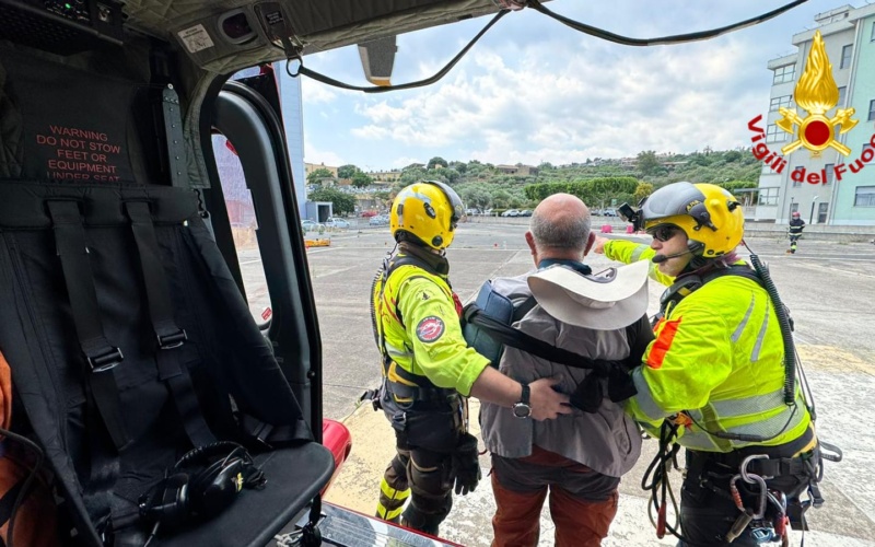L’elicottero dei Vigili del Fuoco “Drago 142” in servizio presso il Reparto Volo di Catania e la squadra dei Vigili del fuoco volontari del Distaccamento di Linguaglossa sono intervenuti in località Monte Frumento delle Concazze, sul versante orientale dell’Etna, per soccorrere un uomo, un 73enne di origine argentina, rimasto infortunato al braccio sinistro mentre effettuava un’escursione.Disorientato e in evidente stato confusionale, l’uomo è stato raggiunto da personale elisoccorritore ed è stato recuperato con l’ausilio del verricello e successivamente trasportato presso l’ospedale Cannizzaro di Catania, dove è stato affidato al personale sanitario per le cure del caso.