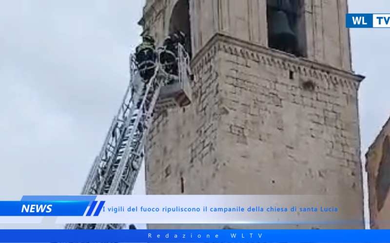 I vigili del fuoco ripuliscono il campanile della chiesa di santa Lucia – (VIDEO)