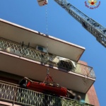 La donna è stata portata fuori dall’abitazione attraverso il balcone utilizzando tecniche e attrezzature speciali e con l’ausilio dell’autoscala.