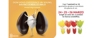 Le Uova di Pasqua dell’AIL (Associazione italiana contro leucemie, linfomi e mieloma) tornano in piazza il 24, 25 e 26 marzo, a colorare di speranza i sogni dei pazienti ematologici e quest’anno saranno ancora più riconoscibili, grazie ad un nuovo incarto, che racchiude l’impegno di sempre: donare un futuro ai sogni dei pazienti.