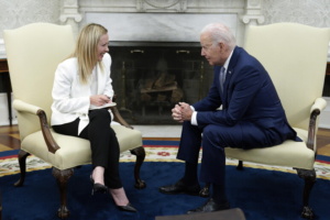 Così la premier Giorgia Meloni nell’incontro nello Studio Ovale con Joe Biden. “Le nostre relazioni sono storicamente forti, superano i governi e restano solide indipendentemente dal colore politico”. “Voglio porgere le mie condoglianze a tutti coloro che nel Mediterraneo stanno soffrendo condizioni meteorologiche estreme”., ha detto Biden nel corso del loro incontro sottolineando che lui e la premier “sono diventati amici”.