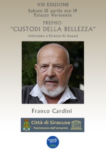Ospite d’onore sarà il professore Franco Cardini, studioso e storico di fama internazionale, al quale, sabato 15 aprile alle ore 19, a Palazzo Vermexio, verrà consegnato il Premio “Custodi della Bellezza”. Cardini è professore ordinario di Storia medievale all’Università di Firenze, professore emerito dell’Istituto Italiano di Scienze Umane alla Scuola Normale Superiore di Pisa, da circa cinquant’anni si occupa di pellegrinaggi, delle Crociate, di rapporti tra Cristianità e Islam, anche trascorrendo lunghi periodi di studio e di insegnamento all’estero. Il premio, destinato a personalità di assoluto rilievo nella promozione e custodia della cultura e della bellezza, che Nostos e Art.9 realizzano con il Patrocinio della Città di Siracusa, nasce nel 2016 ed è dedicato al grande archeologo siriano Khaled Al-Asaad, martire di Palmira. Anche quest’anno, come nelle precedenti edizioni, il premio consisterà in un’opera dell’artista Andrea Chisesi. La cerimonia di consegna sarà anticipata da una Lectio magistralis di Franco Cardini contro la cosiddetta cancel culture.