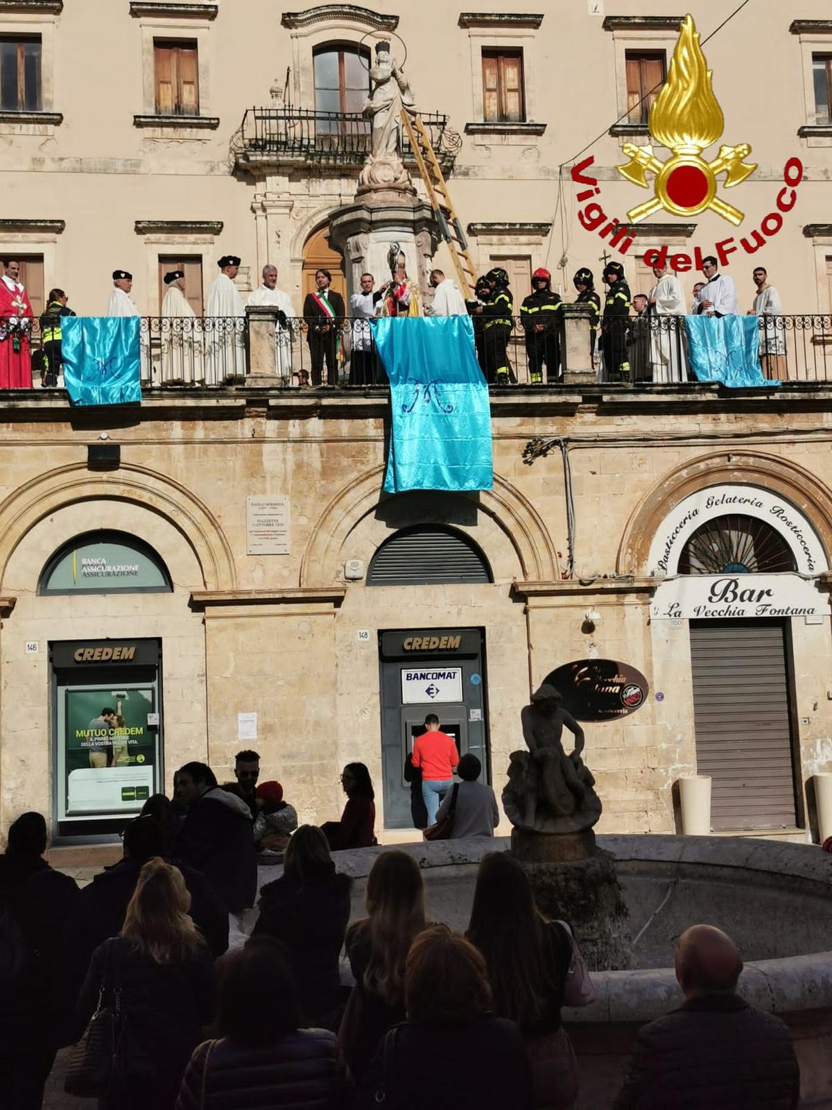 In occasione della festa dell’Immacolata Concezione, oggi a mezzogiorno, i vigili del fuoco di noto hanno avuto l’incarico e l’onore di porgere l’omaggio floreale alla statua della Vergine sul sagrato del Santuario dedicato a San Francesco d’Assisi. A noto come a Roma e in altre città d’Italia i vigili del fuoco hanno presenziato questa importante cerimonia al termine della Santa Messa di rinnovo degli atti di consacrazione della Diocesi e della Città alla Vergine Immacolata.