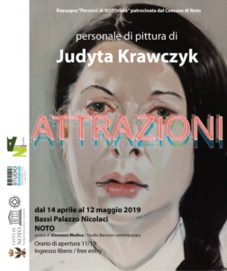 L’edizione 2019, curata dal suo ideatore Vincenzo Medica nel 2002, con l’intenzione di portare alla luce talentuosi artisti, ancora poco conosciuti, si apre con la mostra ATTRAZIONI, con i singolari ritratti dipinti, di piccolo formato, che l’artista Judyta Krawczyk, originaria di Varsavia, ma innamorata della Sicilia e di Noto, presenterà per la prima volta al pubblico siciliano. La mostra sarà visitabile fino al 12 maggio, tutti i giorni compresi i festivi, dalle 11 alle 19, ad ingresso libero. “Da adolescente, ho visto il film “Il postino” del 1994. Ho sentito un’insolita vicinanza con il luogo e l’atmosfera di questo film. Con calma leggera e metafisica. Un forte desiderio di trasferirsi per vivere lì -dichiara Judyta-Il mio meraviglioso marito Grzegorz – un poeta e un musicista mi hanno portato qui. Si può dire che la Sicilia ha unito i nostri cuori con l’arte e la bellezza. Ed è stata una scelta eccellente! La Sicilia non può essere paragonata a nessun altro posto al mondo. Per me è l’inizio del mondo! Qui mi sento libera. Vedo anche e sento il bisogno e l’amore della libertà nei miei nuovi vicini Siciliani e questo è grandioso. Nella mia pittura, creo un legame con l’immagine, solo attraverso un senso di assoluta devozione nei suoi confronti. Per me, la pittura è una dimensione diversa di fare l’amore. Nei volti delle persone che amo dipingere si rispecchiano i veri sentimenti.. Tutta la libertà umana e la schiavitù. Gioia e tristezza. Potere e debolezza. Tutte queste cose che ci fanno sentire come se fossimo veramente o che volessimo essere.