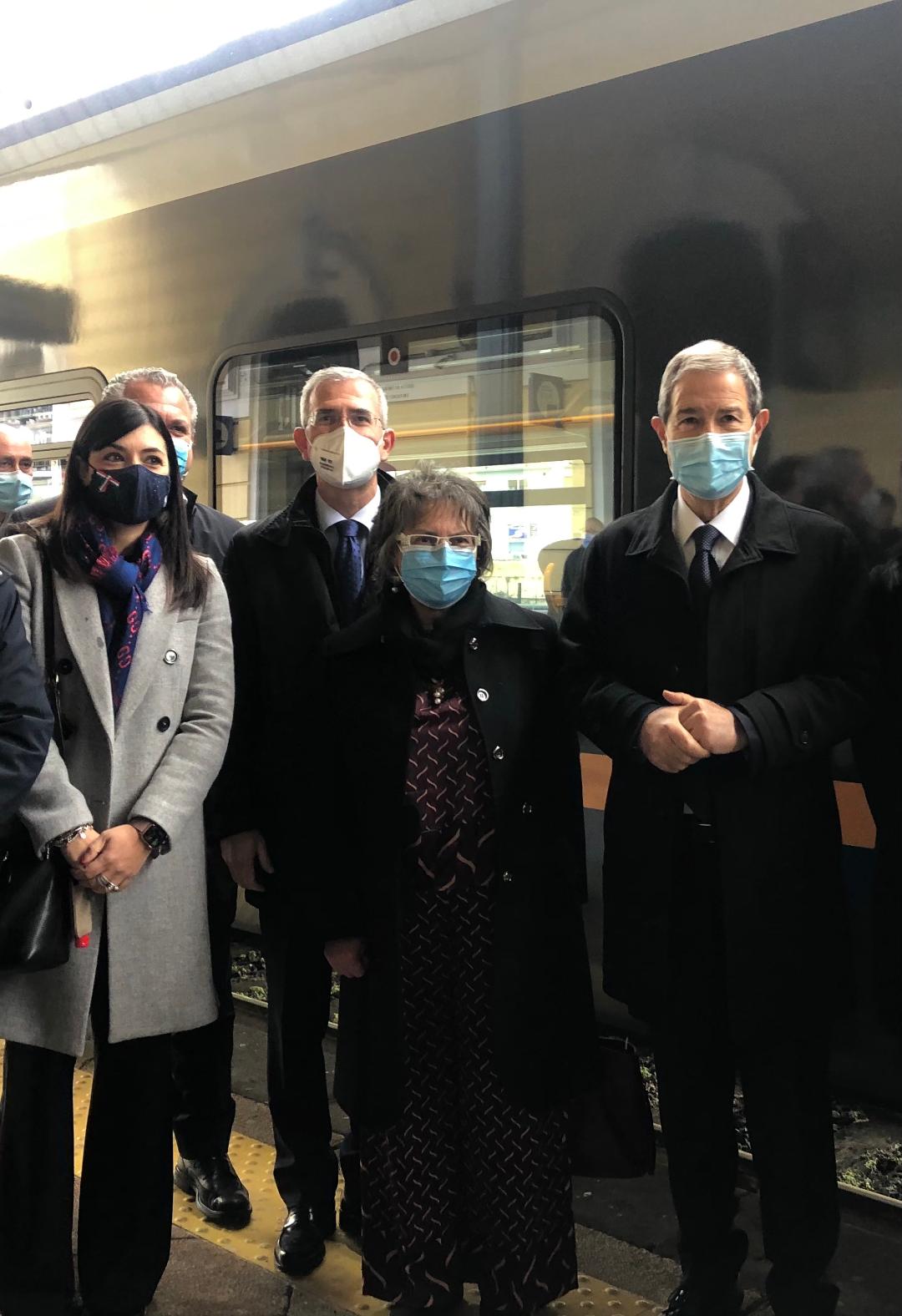 Siracusa, 20 dicembre 2020 – Un nuovo treno Pop sui binari di Siracusa. E’ l’ultimo arrivato tra i mezzi acquistati per rafforzare la flotta della Regione siciliana, consegnato stamattina alla stazione centrale di Siracusa. Alla cerimonia, alla presenza, tra gli altri, del presidente della Regione siciliana, Nello Musumeci, dell’assessore regionale alle Infrastrutture, Marco Falcone, del prefetto di Siracusa, Giusi Scaduto, e del direttore della direzione regionale di Trenitalia, Silvio Damagini, ha partecipato anche il deputato regionale di Fratelli d’Italia, Rossana Cannata, che precisa: “Nonostante il periodo emergenziale che stiamo vivendo, il processo di potenziamento e rafforzamento della compagine dei treni destinati al traffico regionale non si arresta”.