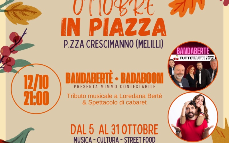 Le centralissime piazze “Crescimanno” e “Rizzo” animeranno l’area storica di Melilli con la kermesse “autunnale” ricca di appuntamenti ogni weekend fino a fine mese.