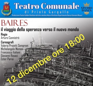 Priolo Gargallo,6 dicembre 2021- Spettacolo di danza, dal titolo BAIRES, ispirato all’emigrazione in Argentina degli anni ‘50, domenica 12 dicembre, alle 18:00, al teatro comunale di Priolo Gargallo.