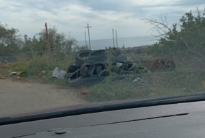 Inoltre all’ altezza del cavalcavia sull’autostrada un cumulo di copertoni fuori uso è stato accatastato sul ciglio stradale.