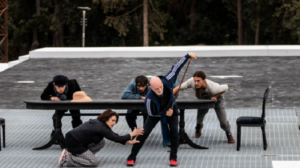 “Cosa succede quando la tecnica, mirabile strumento al servizio dell’uomo, si riduce solo a mezzo privilegiato di accumulazione di capitale? – scrive Leo Muscato nelle note di regia -. Questo è il punto di partenza delle nostre riflessioni. Da qui l’idea di confinare Prometeo in un finis terrae, un sito industriale abbandonato, in cui operava senza sosta un’umanità ostinatamente all’opera, ottenebrata dal suo tedioso lavorio di rovesciamento dei mezzi sui fini”.