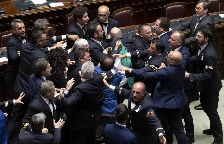 Le due riforme del centrodestra, premierato e autonomia, compiono un passo avanti verso l’approvazione, ma in un clima ad alta tensione, che culmina con una rissa alla Camera con un deputato pentastellato forse colpito da un leghista e portato fuori dall’Aula in carrozzina.