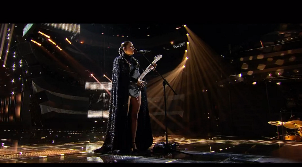 Trend mamma all’Ariston. Francesca Michielin apre la gara con Fango in Paradiso e poi, commossa, dice grazie “a tutte le persone che mi hanno supportato e a mia madre, che per la prima volta è qui”.