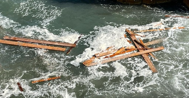 Le tavole del ponteggio montato sul lungomare di Levante – tra Belvedere S. Giacomo e Via dei Tolomei – hanno impiegato poche ore per iniziare a galleggiare e disperdersi davanti tutta la costa siracusana complice l’ultima mareggiata con vento e mare da nord-est.