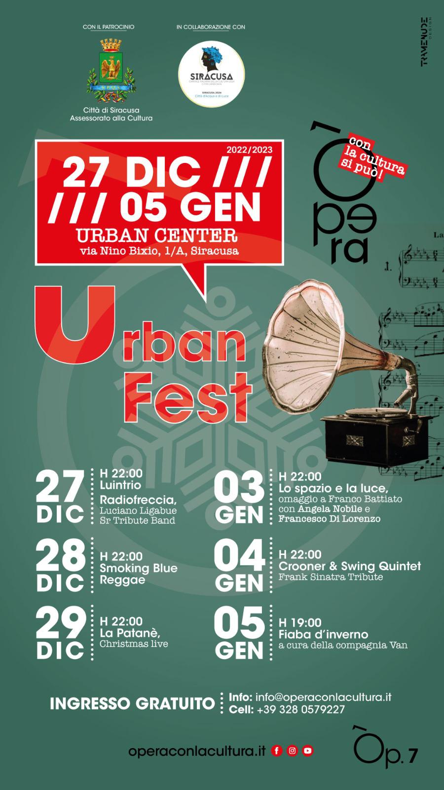 Siracusa, 23 dicembre ‘22 – La musica sarà la protagonista delle festività natalizie a Siracusa. Martedì prossimo (27 dicembre) prenderà il via Urban Fest, una rassegna organizzata dall’amministrazione comunale attraverso gli assessorati alla Cultura e al Turismo, guidati da Fabio Granata, che si terrà all’Urban Center di via Nino Bixio fino al 5 gennaio prossimo.