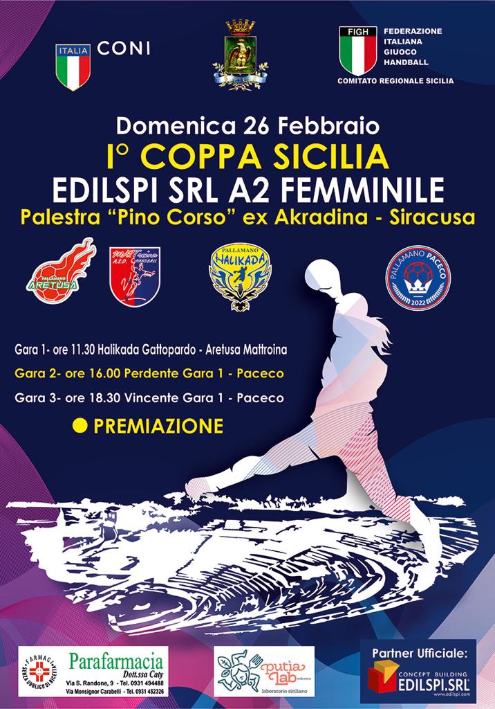 Siracusa, 21 febbraio ‘23 – Conto alla rovescia per la prima edizione della Coppa Sicilia EdilSpi Srl di A2 femminile di pallamano, che si svolgerà al Pala “Pino Corso” di Siracusa, domenica 26 febbraio. In campo, le padroni di casa della Pallamano Aretusa/MaTTroina, le licatesi dell’Halikada Gattopardo e le trapanesi della Pallamano Paceco.