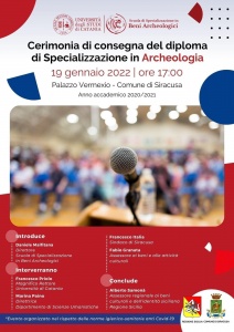Siracusa 17 Gennaio 2022 – Mercoledì 19 gennaio, dalle 17 in poi al Vermexio, cerimonia di consegna del diploma agli allievi specializzandi della Scuola di Archeologia per l’anno accademico 2020/21.