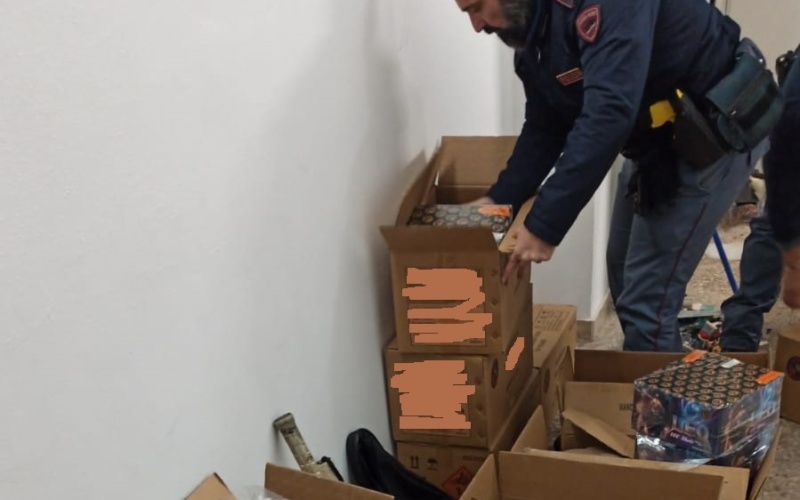 Ieri, agenti della Polizia di Stato, in servizio alle Volanti, hanno rinvenuto e sequestrato artifici pirotecnici per un peso complessivo di 201,5 chilogrammi e, per tale motivo, hanno denunciato un uomo di 43 anni per il reato di detenzione abusiva di fuochi pirotecnici.