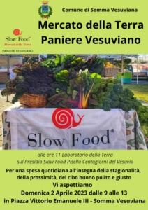 Domani – Domenica 2 Aprile – ore 9 – Piazza Vittorio Emanuele III – Somma Vesuviana – inaugurazione dei Mercati della Terra di Slow Food con buon cibo, prodotti regionali, Laboratori dalle ore 9 alle ore 13.