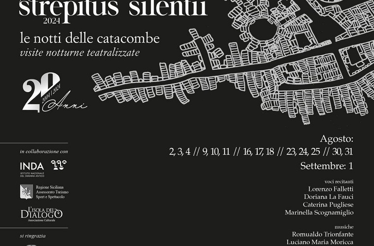 “Vent’anni è un traguardo straordinario. Siamo riusciti a fare vivere a migliaia di persone, italiane e straniere, un evento culturale dentro una catacomba, in una fascia notturna”. Salvo Sparatore della Kairos è soddisfatto della splendida risposta di pubblico che ha decretato negli anni il successo delle visite notturne teatralizzate all’interno della catacomba di San Giovanni a Siracusa. Strepitus Silentii compie venti anni.