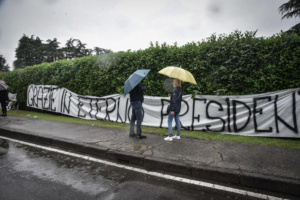 Decine di omaggi e ricordi sono stati lasciati davanti alla storica villa San Martino ad Arcore. Un grande striscione con scritto ‘Grazie in eterno presidente’ è comparso questa mattina su una siepe che costeggia la villa, a firma dei tifosi della curva del Monza calcio.