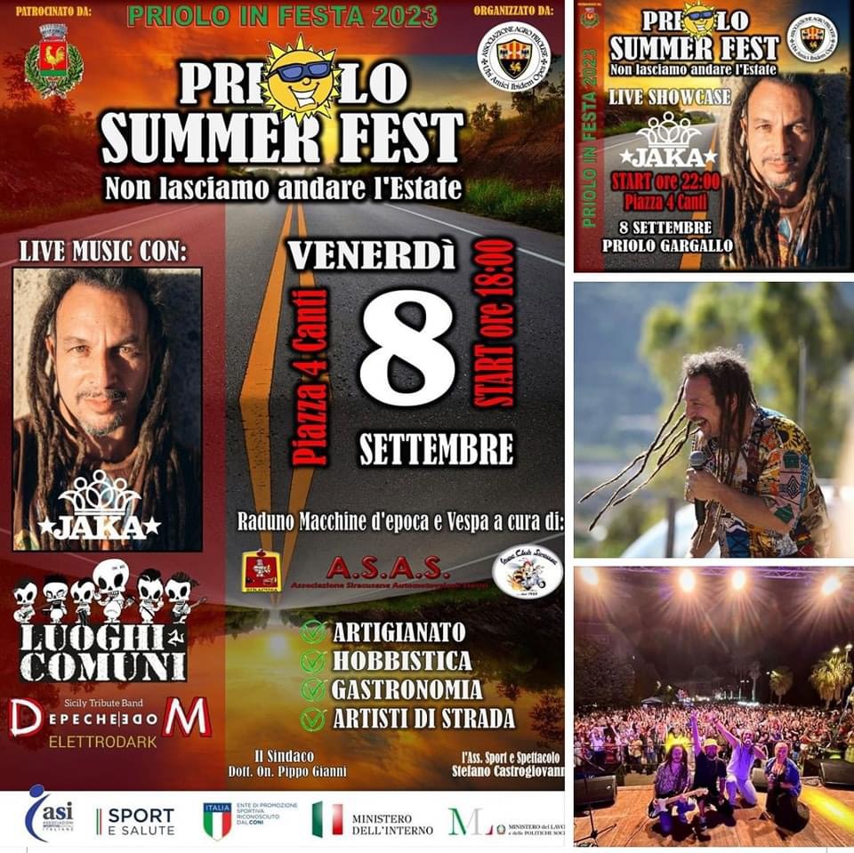 Ospiti musicali saranno gli “Elettrodark”, cover band dei Depeche Mode, il gruppo priolese “Luoghi Comuni” e l’artista internazionale JAKA, Dj Kote Giacalone, cantante, musicista e disc jockey di musica Reggae Raggamuffin, noto anche per le collaborazioni con artisti come Il Generale & la Ludus Dub Band. JAKA ha condotto eventi e programmi radiofonici ed è da anni impegnato nel sociale.