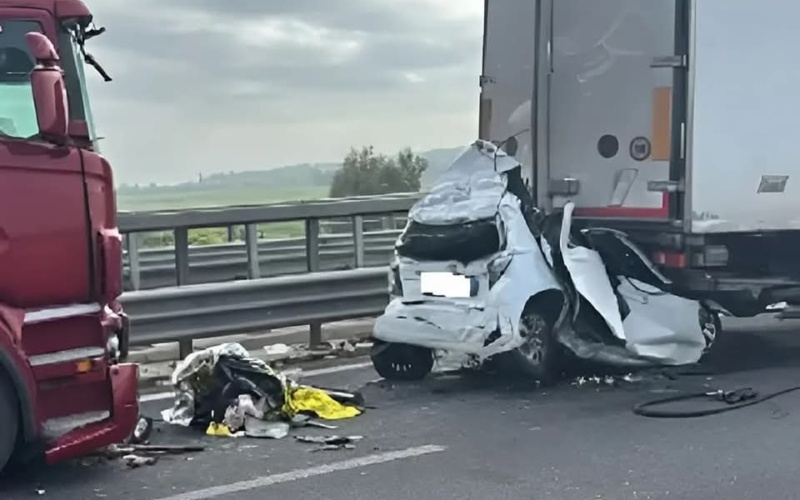 Un’ autovettura guidata da una giovane, per cause in corso di accertamento, è rimasta incastrata tra due mezzi pesanti in un incidente a catena che ha coinvolto lievemente anche altri mezzi.