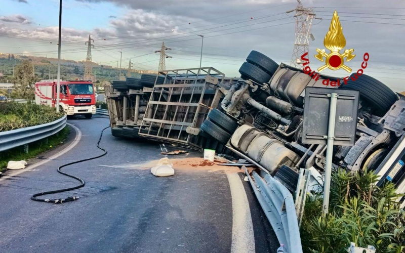 I Vigili del Fuoco del Comando Provinciale di Catania stanno intervenendo da qualche ora per il ribaltamento di un TIR che trasportava materiale edile. L’incidente si è verificato sulla rampa che dalla A19 PA-CT introduce alla Tangenziale in direzione Misterbianco-CT, centro. Sul posto i Vigili del Fuoco hanno provveduto alla messa in sicurezza del luogo, al distacco della parte elettrica del mezzo pesante e al contenimento di una fuoriuscita di carburante dal serbatoio.