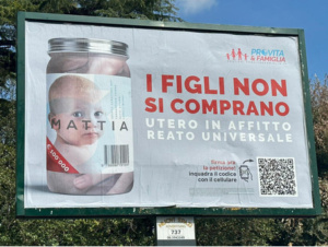 Roma, 12 aprile 2023 – «I Figli non si comprano, l’utero in affitto diventi reato universale. Sono partite le nostre affissioni su Roma e nelle principali città italiane con l’immagine di un bambino in un barattolo – trattato come un prodotto da comprare in un supermercato – e con l’invito a firmare la petizione popolare che ha già raggiunto 33.000 firme. Manifesti tra l’altro già vandalizzati a Bergamo. I figli nascono solo da una mamma e da un papà e hanno bisogno di crescere con entrambi, non essere trattati come oggetti e privati di uno dei due genitori, per i desideri ideologici di chi vuole avere “figli” a qualsiasi costo. Far diventare l’utero in affitto reato universale è un’esigenza non più rimandabile e proprio oggi sono iniziate in Commissione Giustizia alla Camera le audizioni sulla proposta di legge per renderlo tale. Abbiamo ascoltato la surreale difesa dell’utero in affitto da parte dell’Associazione Coscioni, di Famiglie Arcobaleno e della rete Lenford per i diritti Lgbtqia+, ma l’unico diritto in ballo è quello dei bambini a non essere trattati come merce. Auspichiamo quindi che la Pdl sia approvata dal Parlamento in tempi rapidi e in modo compatto, senza farsi irretire dai sindaci “disobbedienti” che, per mezzo delle trascrizioni anagrafiche, vorrebbero legittimare proprio questa aberrante pratica. A tal proposito, infatti, ben venga quanto fatto dalla Procura di Padova che ha chiesto al Comune gli atti delle iscrizioni dei figli di coppie omogenitoriali per sottoporli al vaglio del Tribunale». Così Jacopo Coghe, portavoce di Pro Vita & Famiglia Onlus.