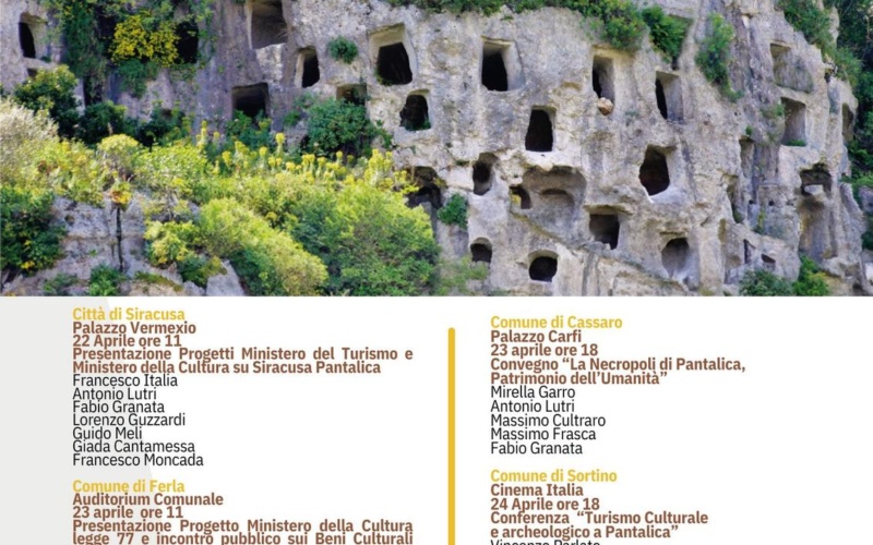 Il 24 aprile, nel comune di Sortino, alle 18, nel Cinema Italia, avrà luogo la conferenza su “Turismo culturale e archeologico a Pantalica” con un nutrito numero di relatori sul tema: Vincenzo Parlato, Milena Tuccitto, Massimo Frasca, Marco Mastriani, Michele Romano, Francesco Moncada, Eleonora Pappalardo.