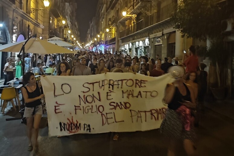 Con questo striscione ieri sera è stata organizzata dall’associazione “Non una di meno” a Palermo una manifestazione dopo la notizia della violenza di gruppo che si è consumata nella zona del Foro Italico.